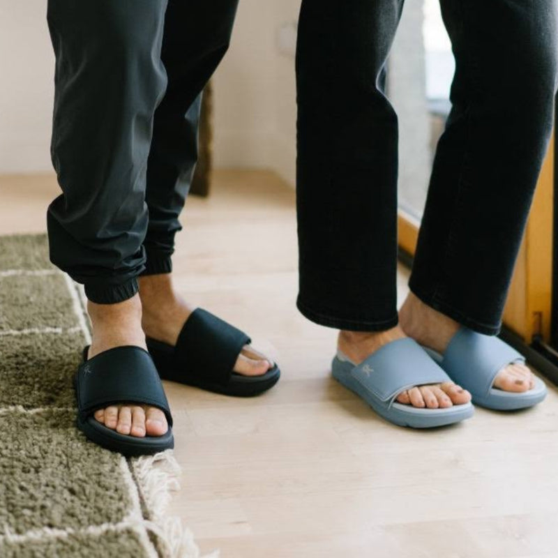 A supportive, premium recovery slide—because foot pain doesn’t go away at home.